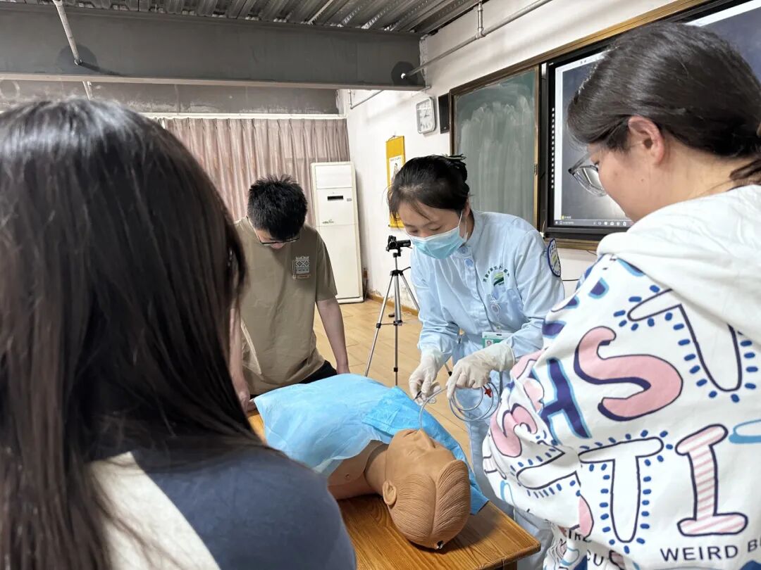后续几日,临床各教研室结合专业特色,开展了专项理论与技能培训。内科教研室聚焦病史采集、腹部体格查体和病历书写、医德医风、人文素养四大要素,让学生在入院前学习如何系统询问病史、规范进行体格检查,并掌握住院病历、首次病程记录等医疗文书的书写规范,确保学生熟练掌握临床基本功。医德医风与人文素养通过案例分析,引导学生理解医者仁心的深刻内涵,学习如何与患者进行有效沟通,在临床工作中体现人文关怀,培养高尚的职业道德与职业情操。外科、妇产科、儿科教研室以实操技能培训为重点,包括以下技术操作:切开、缝合、换药、骨盆外测量、四部触诊、儿科病史采集与体格检查、小儿液体和药物剂量计算、穿脱隔离衣、手术衣、戴无菌手套等无菌操作技术,心肺复苏、导尿、胃管置入、腹腔穿刺等急救与诊疗操作。