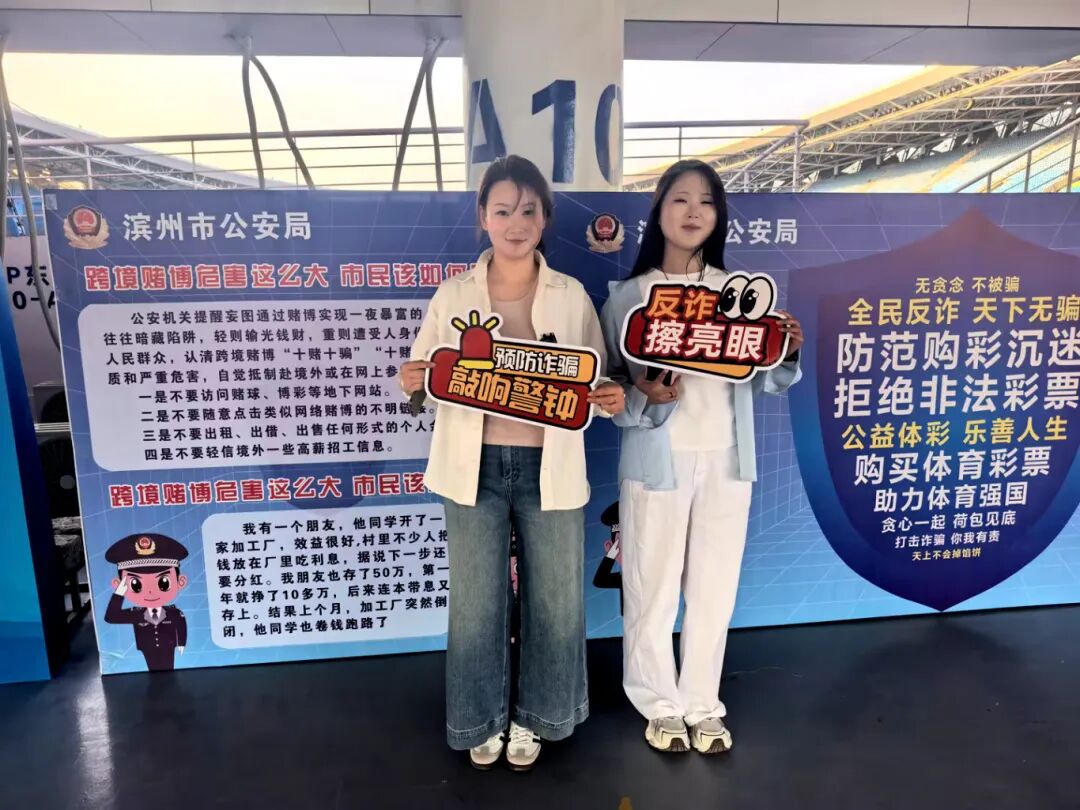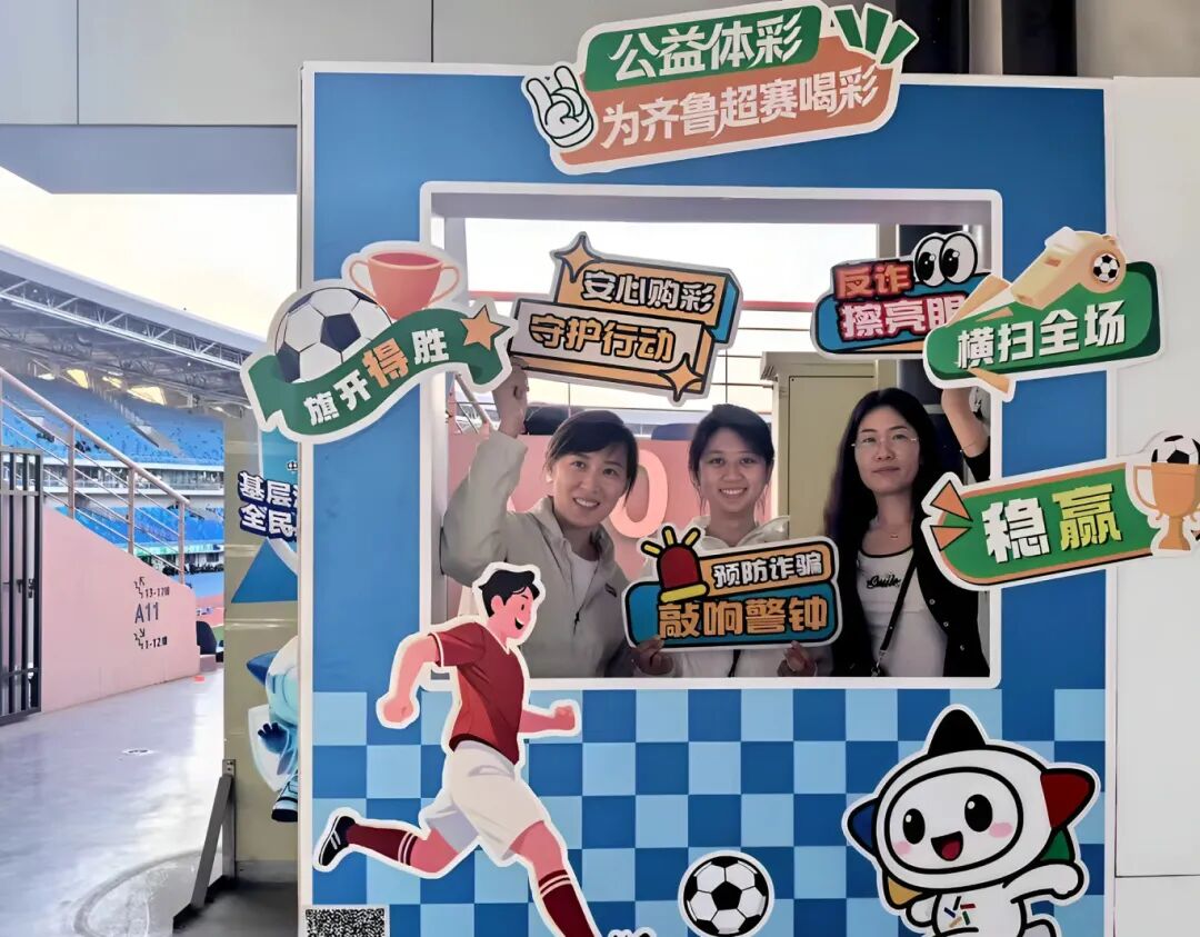 赛事现场,一场由滨州体彩联合滨州财政、公安、体育等部门打造的 "安心购彩守护行动" 同步启动。活动将理性购彩、反诈拒赌、防范金融风险、打击非法彩票等主题与赛事深度融合,为球迷带来一场“可看、可玩、可学”的公益科普新体验。