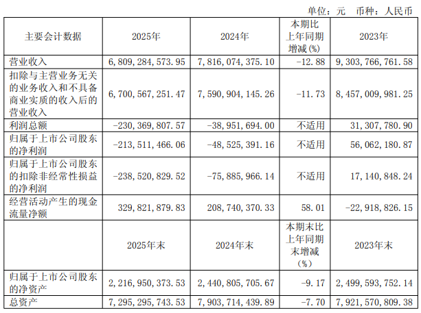 日前,澳柯玛(600336.SH)披露2025年年报。报告显示,公司全年实现营业收入68.09亿元,同比下降12.88%;归母净利润-2.14亿元,较2024年的-4852.54万元亏损再次;扣非净利润-2.39亿元,同比减少215.32%。这是澳柯玛连续第二年出现全年亏损,且亏损规模显著加深。
