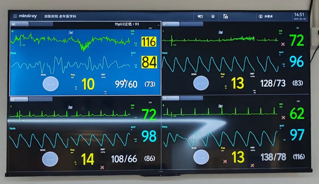 作为黄河三角洲地区老年医学领域的核心单位,滨医附院老年医学科长期致力于老年多病共存、多器官功能不全及疑难危重症的系统诊疗,在多系统复杂疾病综合管理方面积累了丰富经验。老年医学科ACE单元于2024年8月启用,配有监护仪4台、中央监控系统1套。