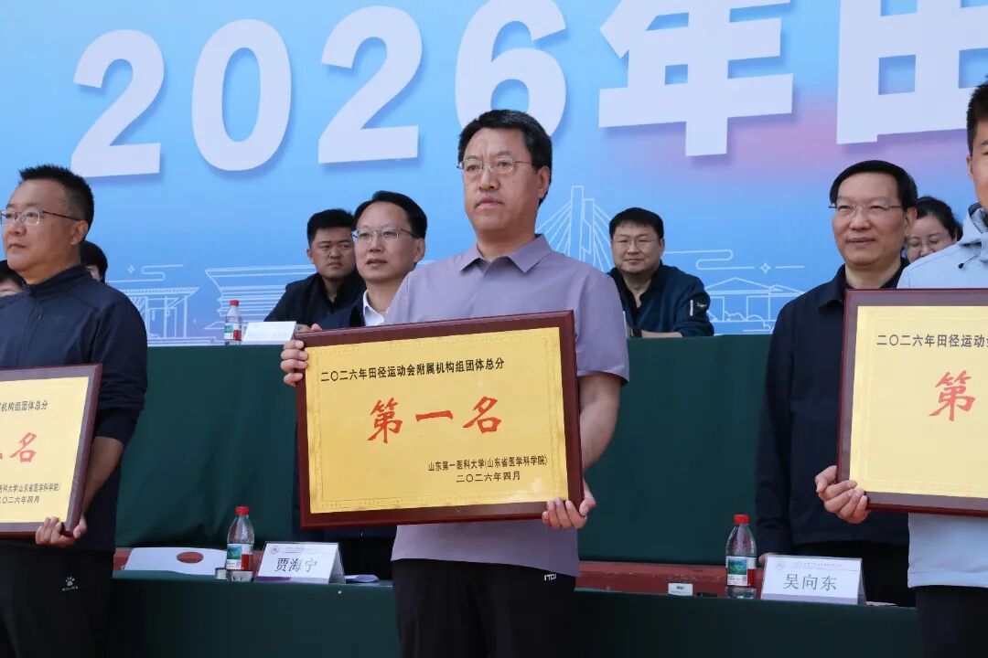 近日,山东第一医科大学2026年田径运动会隆重开幕,滨州市人民医院派出20名运动员 参加了九个大项十七个小项的角逐,最终滨州市人民医院摘得附属机构组总分119分,团体第一名的好成绩。医院党委书记肖春祥,党委委员、副院长、工会主席李尊昌带队前往,为运动健儿加油助威。