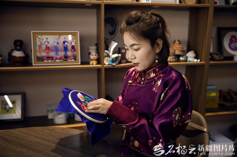 基地的主人叫艾尔代尼才次克,一位90后蒙古族姑娘,也是和硕县非物质文化遗产项目“蒙古族服饰制作”的代表性传承人。