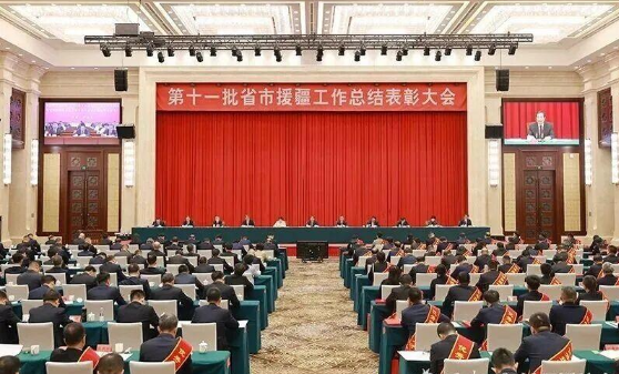 自治区党委副书记、自治区主席艾尔肯·吐尼亚孜主持。自治区人大常委会主任祖木热提·吾布力,自治区政协主席努尔兰·阿不都满金,自治区党委副书记、兵团政委何忠友,自治区党委副书记陈明国出席。自治区党委常委、组织部部长王琳宣读了自治区党委和政府关于表扬第十一批省市援疆工作先进集体的通报和关于表彰第十一批省市优秀援疆干部人才的决定。