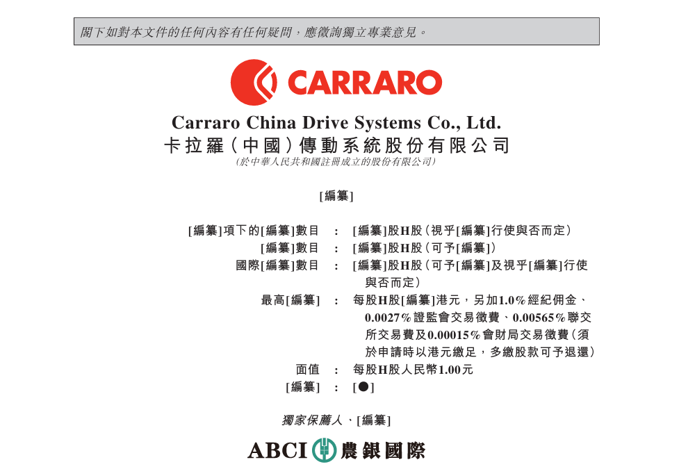 港交所4月24日披露的文件显示,卡拉罗(中国)传动系统股份有限公司(下称“卡拉罗中国”)正式向港交所主板递交上市申请,由农银国际担任独家保荐人。这家背靠意大利百年工业巨头的非公路传动系统龙头,正式开启港股上市进程。