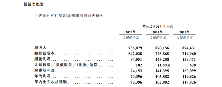 财务数据显示,卡拉罗中国近年来利润水平持续提升。2023年至2025年,公司分别实现总收入7.36 亿元、8.70 亿元和8.74 亿元,净利润分别为7039.6 万元、1.06亿元和1.20亿元。三年间,卡拉罗中国收入增长约18.8%,净利润增长约70.4%。