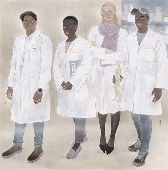 周佳驿《四海同钦·歧黄之光》180×180cm 纸本工笔 2025年