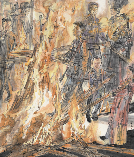 查丽君《诺苏流火行》235x200cm 纸本水墨 2025年