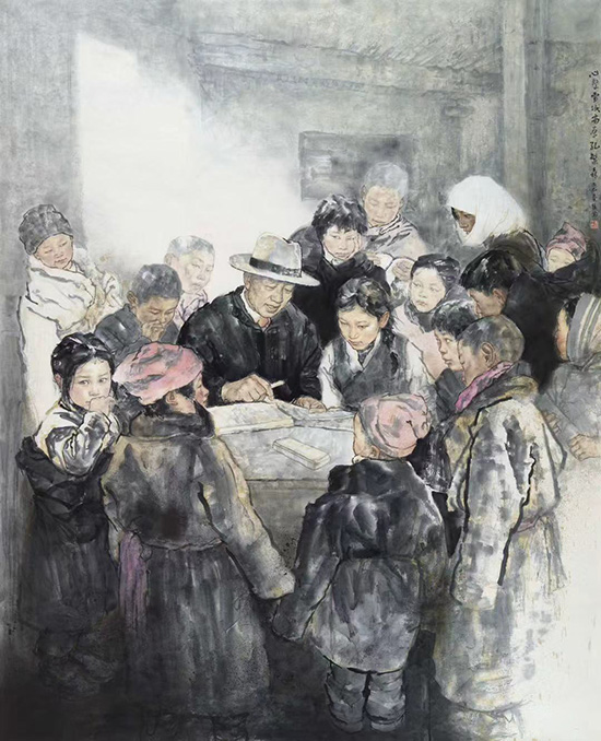 王水清《我们走在大路上》193×176cm 纸本重彩 2026年