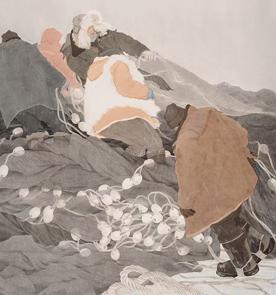 韩知松《冬捕大起网》 216cm×200cm 纸本工笔 2025年