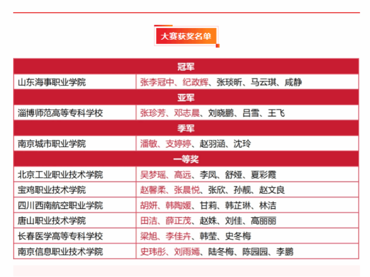 山东海事职业学院由张李冠中、纪政辉、张琰昕、马云琪、咸静五位教师组成的教学团队,凭借深厚的专业素养、创新的教学设计、娴熟的数智技术融合与沉稳的现场表现,在激烈角逐中脱颖而出,一举夺得全国总决赛冠军,并同时斩获本届大赛“最受欢迎团队”单项奖,成为本次赛事唯一斩获双项最高荣誉的团队。
