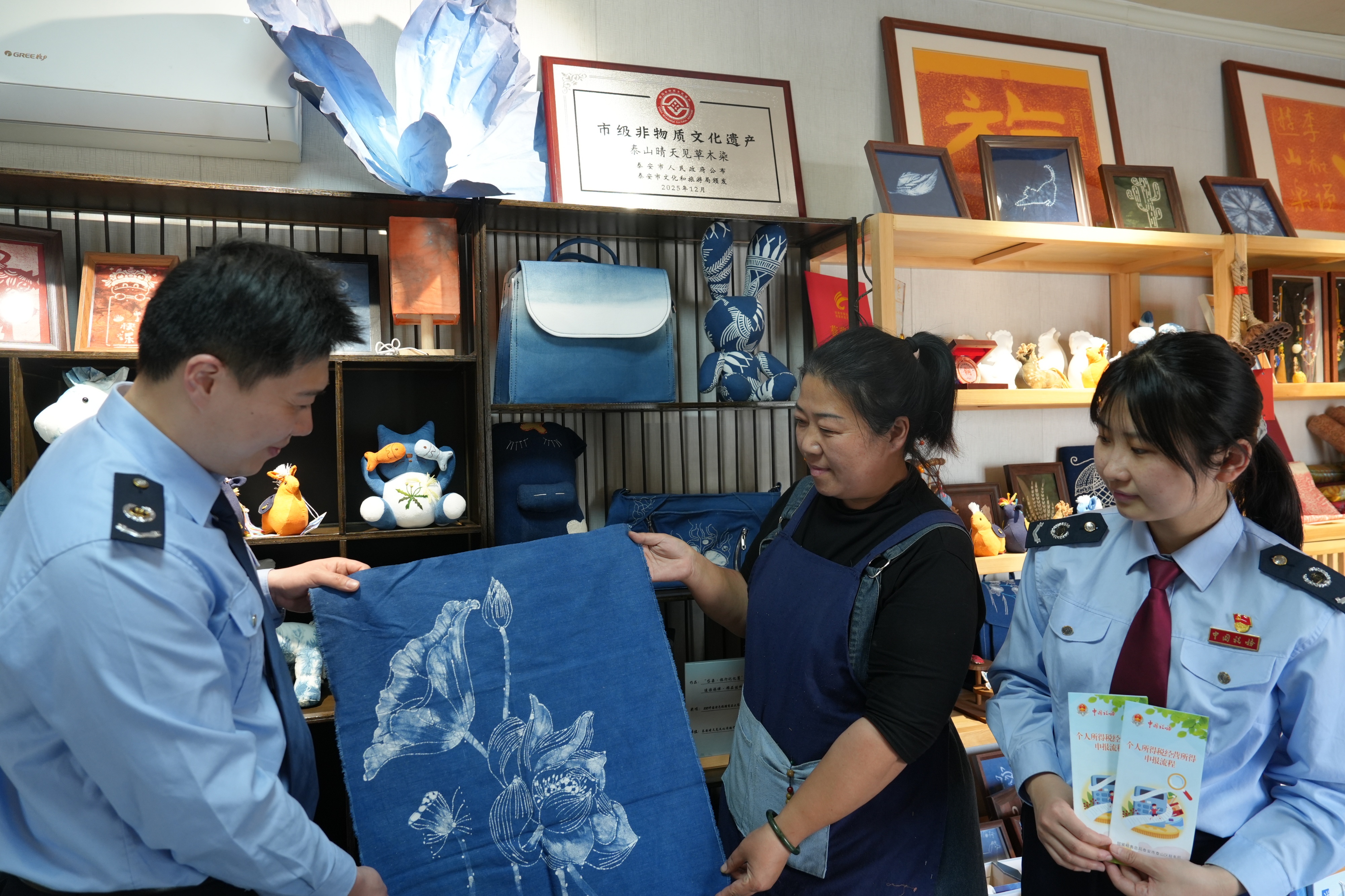近日,泰山区税务局工作人员走进工坊,与传承人面对面交流,了解工坊生产经营、研学开展及产品销售情况。“泰山的草木是最好的染料,春天的艾草染出青碧,夏天的石榴皮染出暖橙,秋天的板栗壳染出棕褐,顺着四时变化取料,才能染出独一无二的色彩,”非遗传承人介绍:“我们正想了解一些涉税相关知识,你们就来了,太贴心了!”