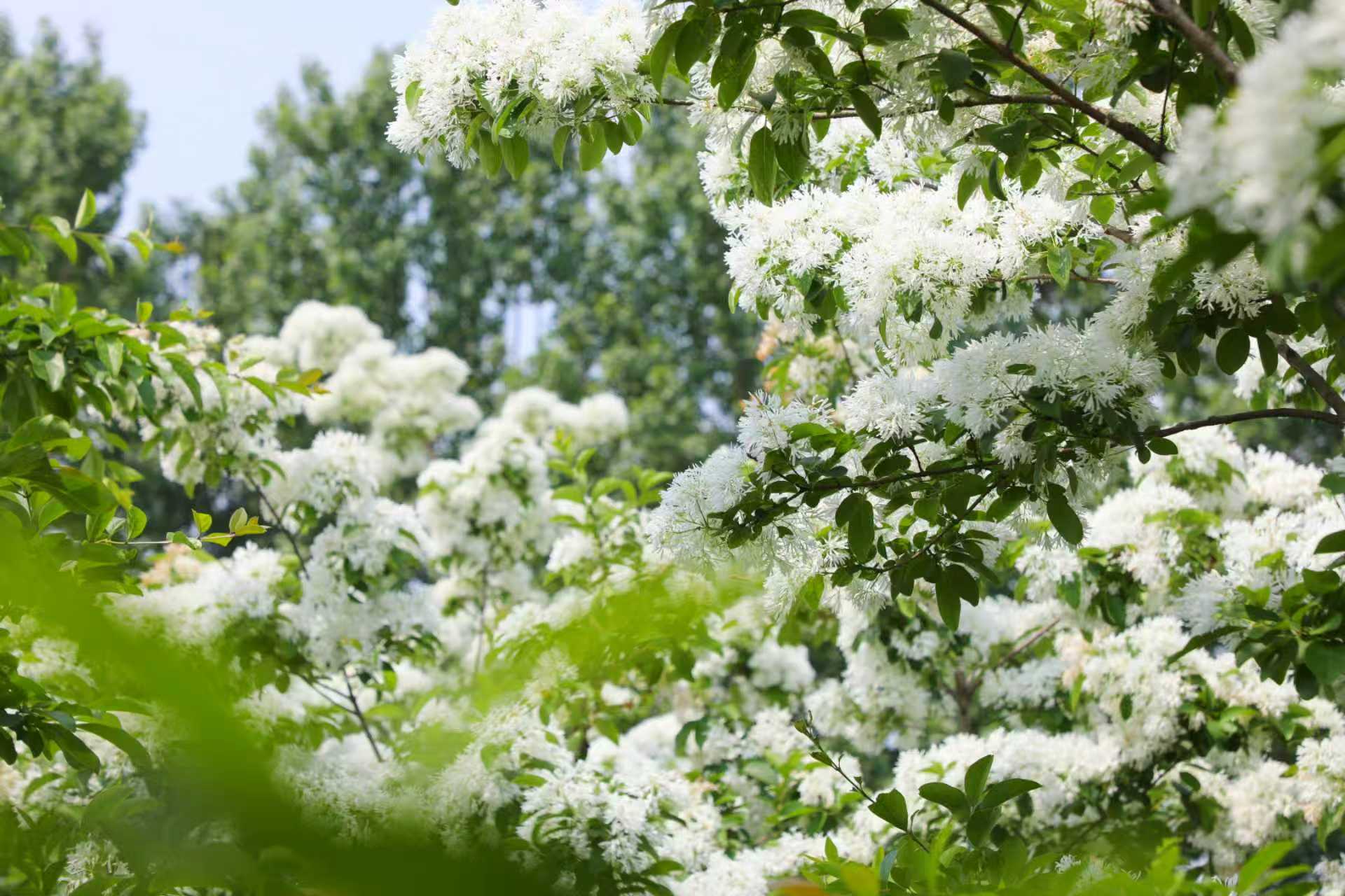 暮春时节,在临沂沂河新区白沙埠镇西孝友村北的大吴雪罗绿植基地,上万株雪罗迎风怒放,满树白花,如云似雪,层层叠叠,漂浮在枝头。
