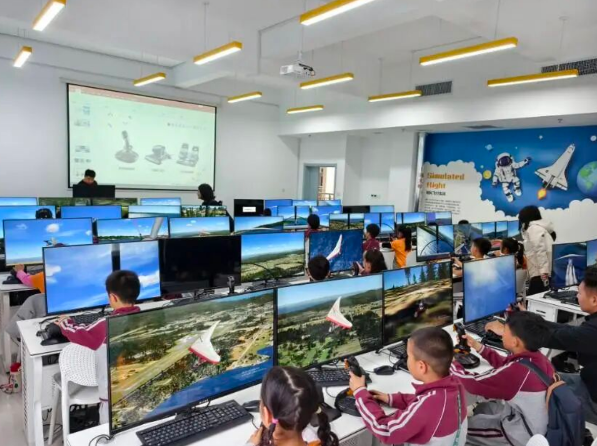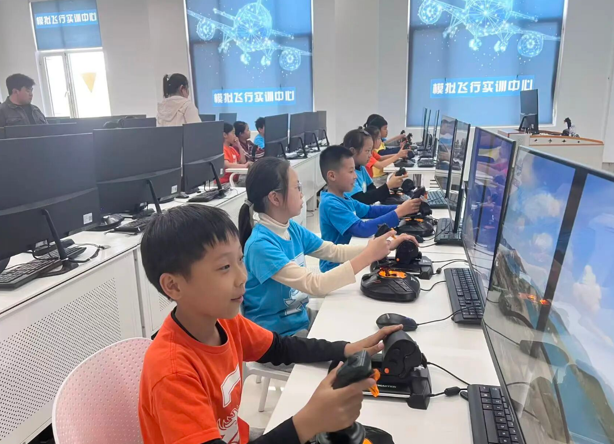 坐进模拟驾驶舱,同学们变身小小飞行员,沉浸式体验航空驾驶操作。仰望“蓝天”、操控设备,在直观感受中了解航空知识,点燃航天梦想,以少年之志追逐星辰大海。