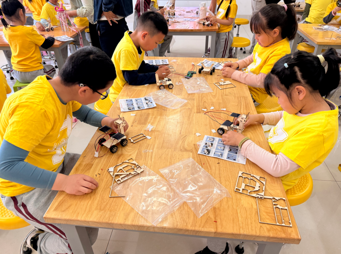 从零件组装到线路调试,同学们化身小小工程师,亲手搭建太阳能小车。一双双小手灵活操作,一次次尝试不断探索,在动手实践中感受清洁能源的神奇魅力,激发科学探究兴趣,培养创新思维与动手能力。