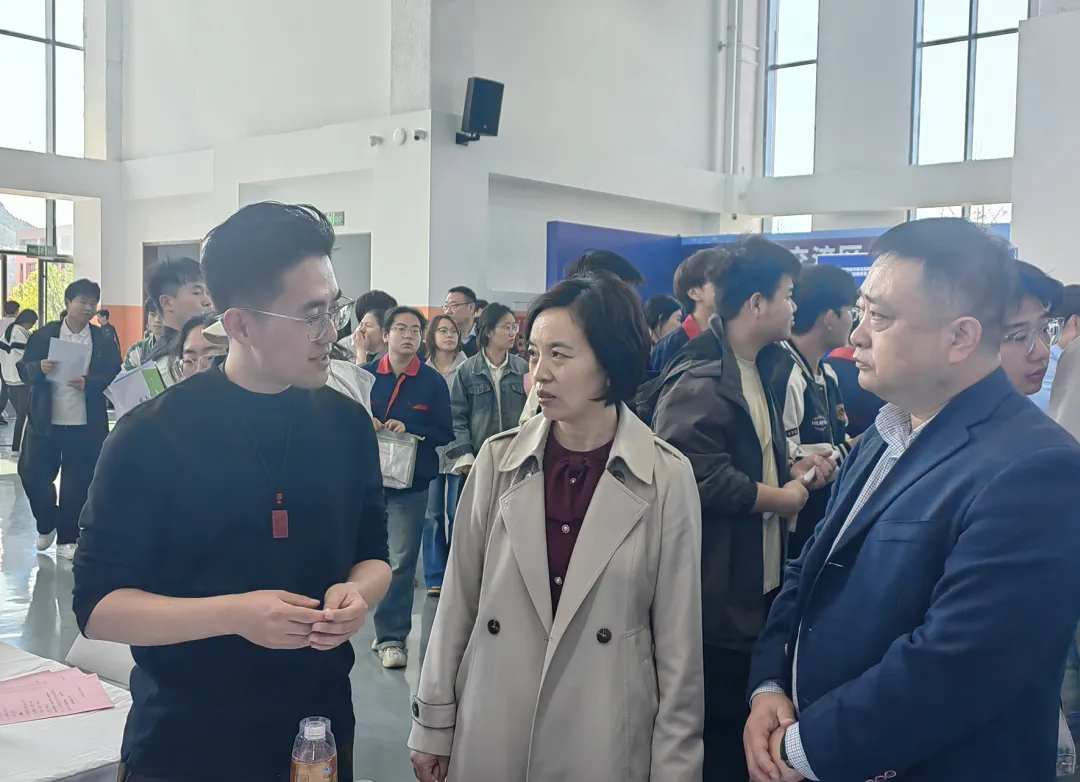 招聘现场,来自高唐县的12家优质企业提供岗位228个,涵盖电子商务、机械制造、农业推广、市场营销等多个领域,岗位类型丰富,专业匹配度高,吸引了众多应届毕业生驻足咨询、投递简历。市中区公共就业和人才服务中心副主任杨玉芝;高唐县人力资源和社会保障局党组书记、局长李学民,党组成员李强及相关业务科室负责同志现场调研指导,深入了解用人单位人才需求现状,详细调研学生求职意愿与就业市场动态,并就校地合作、产教融合等事宜进行交流。