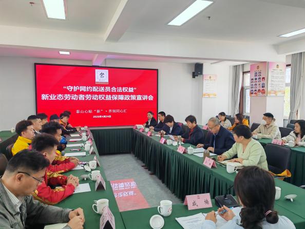 4月24日,泰山心贴“新”·界别同心汇组织“守护网约配送员合法权益,新业态劳动者劳动权益保障”政策宣讲会,提高外卖骑手维权意识和能力,凝聚关心关爱新业态劳动者合法权益的共识和合力。