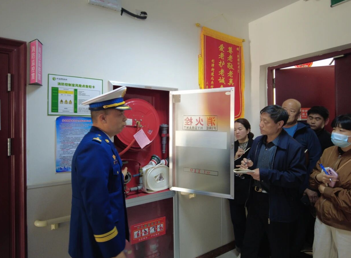 设施讲解规范管理。宣传人员针对防火门、消防泵房、消防控制室等关键消防设施部位,逐一讲解其功能作用、日常检查要点及运维管理规范,帮助工作人员全面掌握消防设施管护知识,进一步规范养老机构日常管理流程。