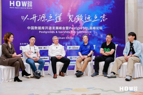 以 HOW 2026 峰会为契机,一场汇聚全球视角的开源对话亦同步展开,墨创数迹创始人汪丹(Yolanda)主持,对话 Mark Wong(PostgreSQL 核心贡献者)、吕新杰(PostgreSQL Asia committee member、亚洲 PostgreSQL 大会组委会成员、瀚高基础软件股份有限公司副总裁)、谭中意(中国开源推进联盟副秘书长)、周宝峰(中国 PostgreSQL 分会国际顾问委员会秘书长)、厉超(瀚高首席架构师 & PostgreSQL 贡献者)五位业界领军人物,围绕“开源链接世界·共建共治共享”主题深入融通,为构建开放包容的数据库生态体系凝聚共识。