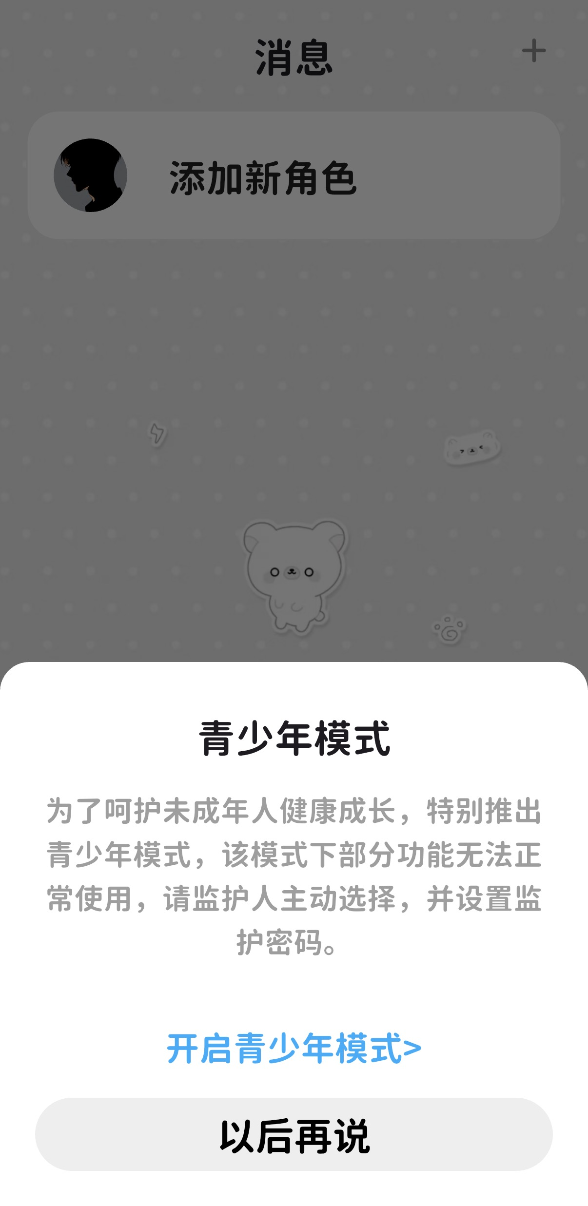 如果用户主动开启未成年人模式,可玩性受限会大幅缩水。记者体验发现,筑梦岛APP在未成年人模式下,每日使用时长累计不超过40分钟,晚10点至次日早6点无法使用,平均每15分钟提示一次休息,单次保护性限制充值不得超过50元,每月累计充值不得超过200元;进入未成年人模式后,猫箱APP中可对话的AI角色只剩下4个,分别是物理老师、作业帮手、英语老师和古文讲解AI,点赞、转发、评论等功能均受到限制。