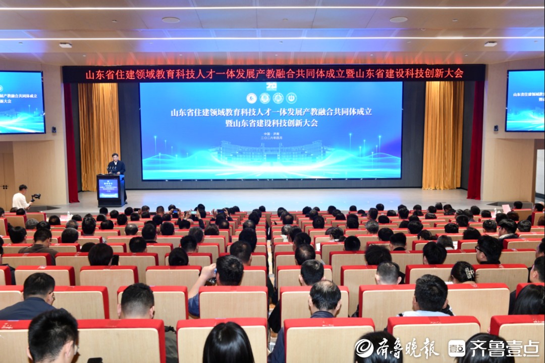 4月25日,由山东省住房和城乡建设厅、山东省教育厅、山东省科学技术厅指导,山东建筑大学、山东省建设科技与教育协会、青岛理工大学、山东城市建设职业学院共同发起的山东省住建领域教育科技人才一体发展产教融合共同体成立大会暨山东省建设科技创新大会在山东建筑大学筑基会堂举行。大会正式发布《山东省住建领域教育科技人才一体发展产教融合共同体济南倡议》,并通过了共同体组织机构方案,集中展示了山东省住建领域推进教育科技人才一体发展的阶段性成效。