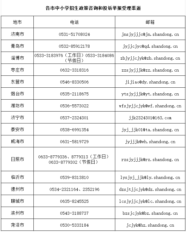 招生政策咨询和投诉举报受理渠道