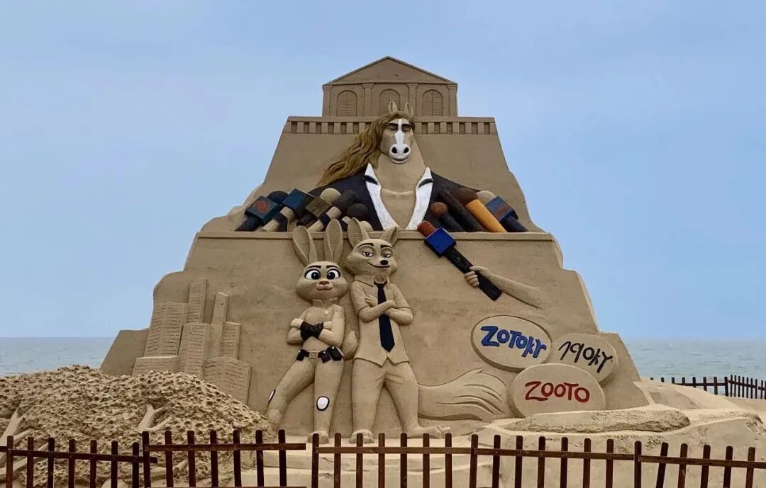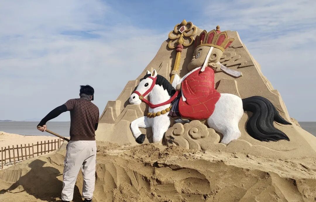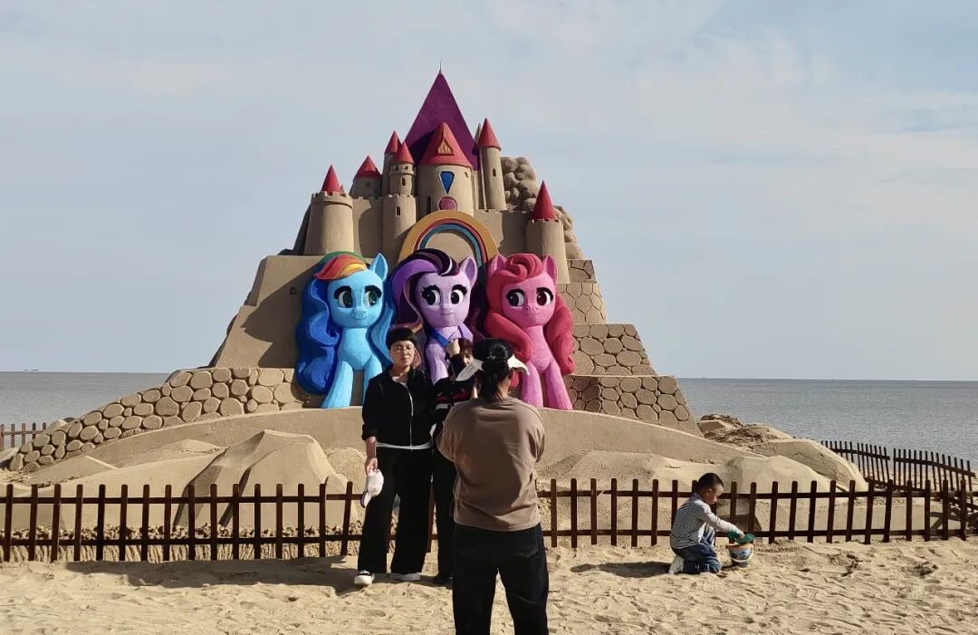 4月28日,走进南海公园(点击开启路线导航),筹备工作繁忙有序,假日氛围感持续升温。沙滩之上,第十九届威海沙雕文化休闲季创作已进入收尾阶段。国家级非遗“李龙王”主题主雕塑气势磅礴、雏形尽显。小马宝莉、白龙圣驹、疯狂动物城等童趣IP沙雕造型生动鲜活、错落分布,国风古韵与潮流童趣相融共生,山海风光与沙雕艺术相映成趣。一幅创意十足、景致别致的滨海艺术画卷即将呈现,静待游客打卡游玩。