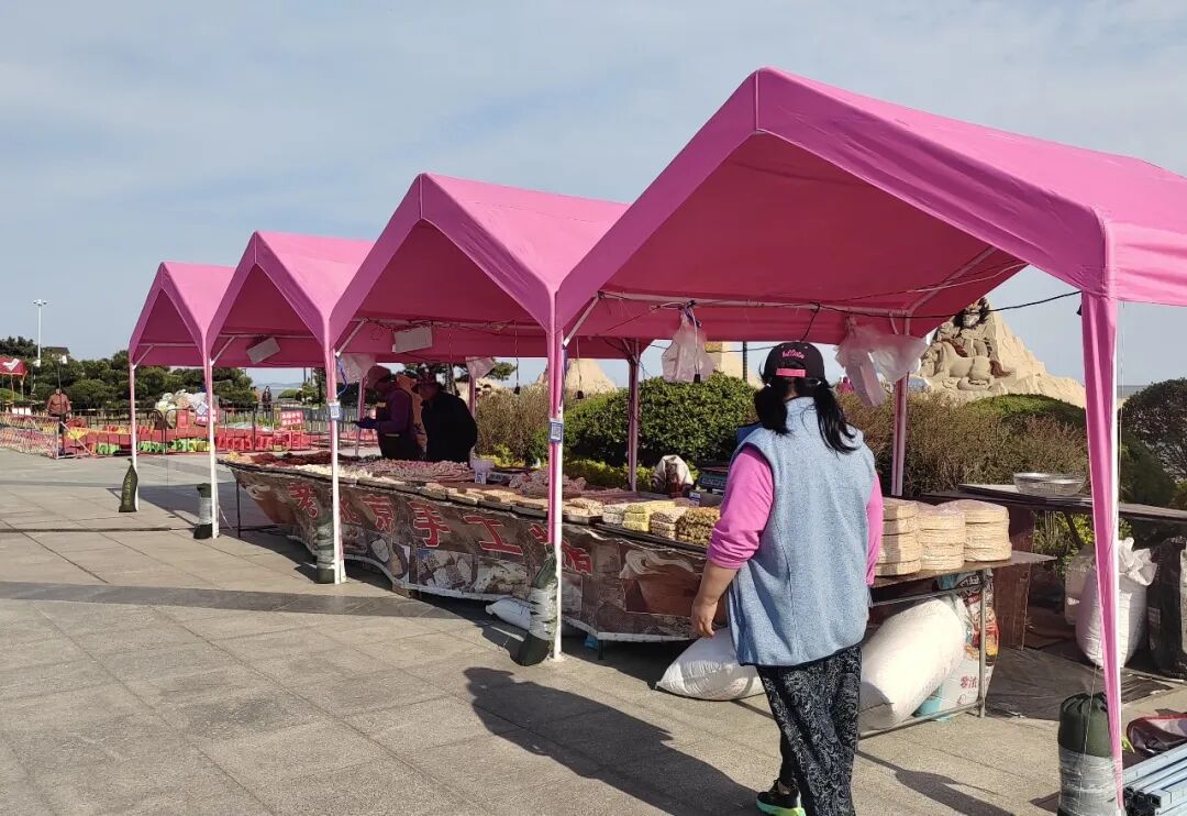 特色市集摊位搭建、场地布设等工作稳步开展。商户提前备货、优化陈设,积极抢抓假日文旅机遇。大家纷纷看好文旅热度,备足特色食材、丰富品类供给,用心打造地道滨海风味美食,全方位满足游客休闲购物、舌尖品尝的多元需求。正在整理货品的摊位老板龙治峰说:“我们提前好几天就开始准备了,每年‘五一’南海这边人都很多、人气旺,我们很有信心。”