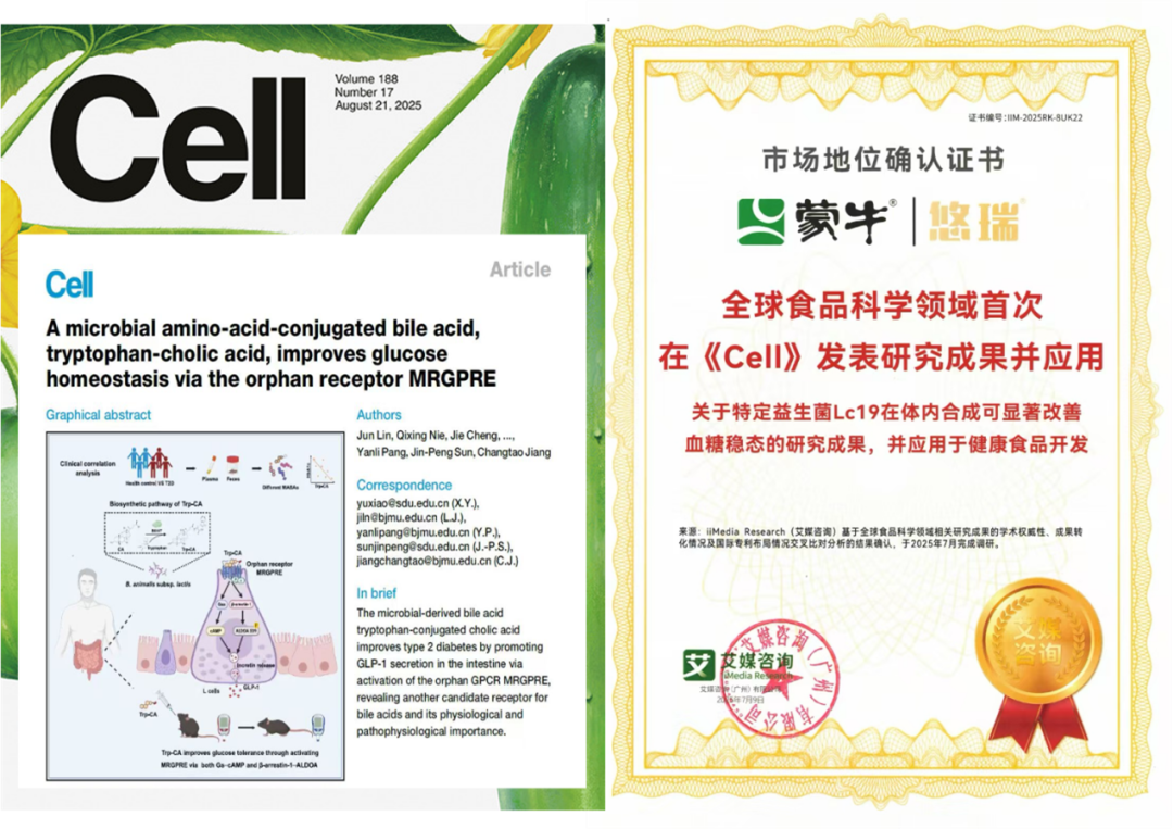 2025年,蒙牛研发投入达5.55亿元,专职研发人员482人,在全球布局8个研发基地,与众多知名高校和研究机构联合成立14个联合实验室,共建产学研协同创新生态,取得多项里程碑式突破:联合北京大学医学部开展的血糖调控机制研究成果发表于国际顶级学术期刊《Cell》;自主研发的副干酪乳酸杆菌Lc19成功应用于“悠瑞安糖盾”系列产品,实现从菌株研发到产品转化的全链路创新,全年斩获多项省部级科技进步和技术发明大奖,科研成果转化能力持续领跑行业。