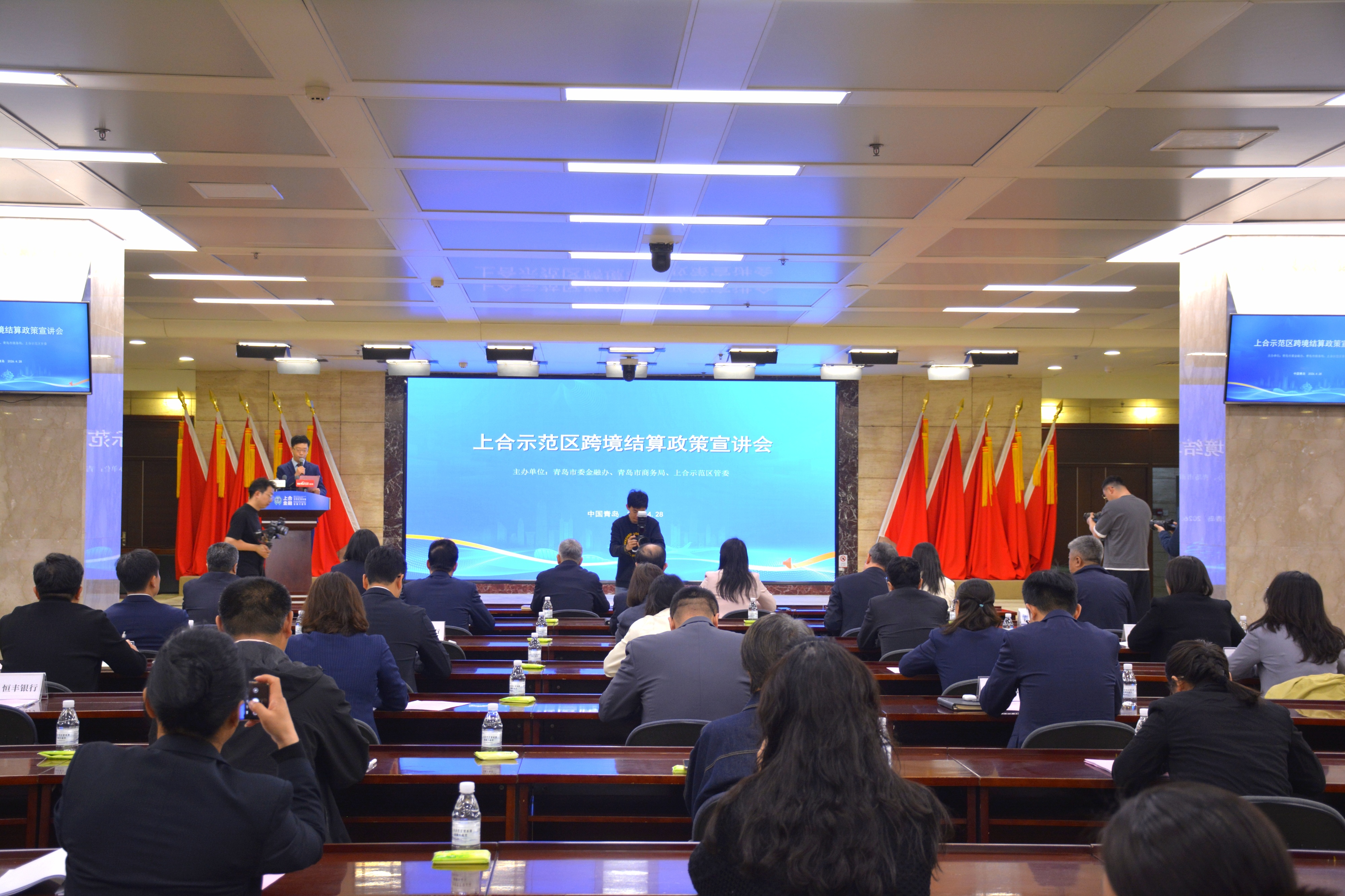 上合示范区跨境结算政策宣讲会由青岛市委金融办、青岛市商务局、上合示范区管委会共同主办,上合示范区资本港发展中心承办,市区有关单位负责同志、32家驻青金融机构以及华为、荣耀、海尔、跨境银行间支付清算公司等100余家企业代表参会。青岛市商务局外贸处“稳外贸 防风险”主题宣讲暨外贸大讲堂进区市系列活动上合示范区专场同期举行,上合示范区介绍上合资本港建设成效、跨境结算鼓励政策及“金融大超市”建设推进情况,重点解读《关于促进与上合组织国家地方经贸合作的若干政策》及配套实施细则核心内容。中国银行青岛市分行、跨境银行间支付清算公司、海尔鑫海汇作主题宣讲。