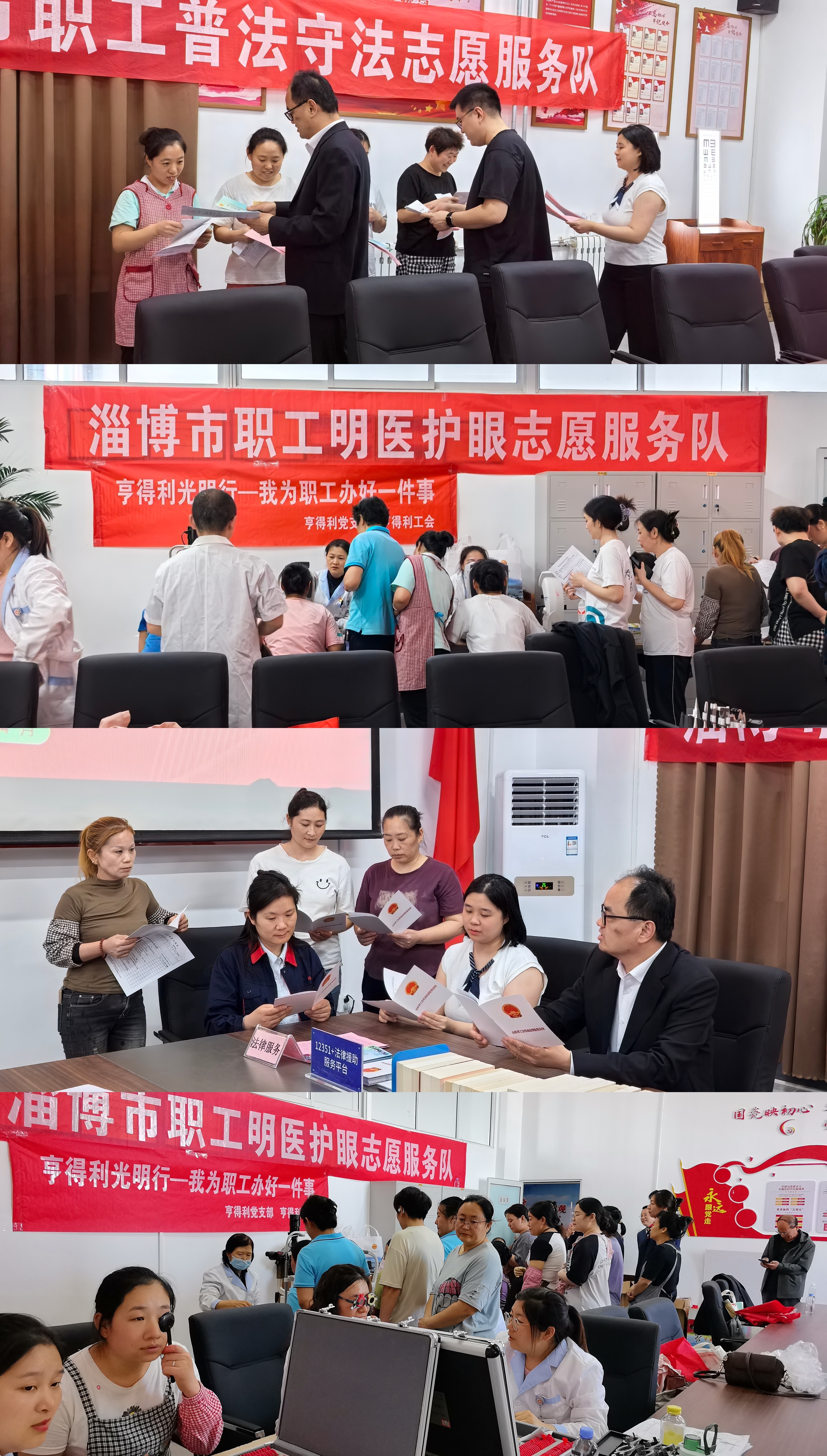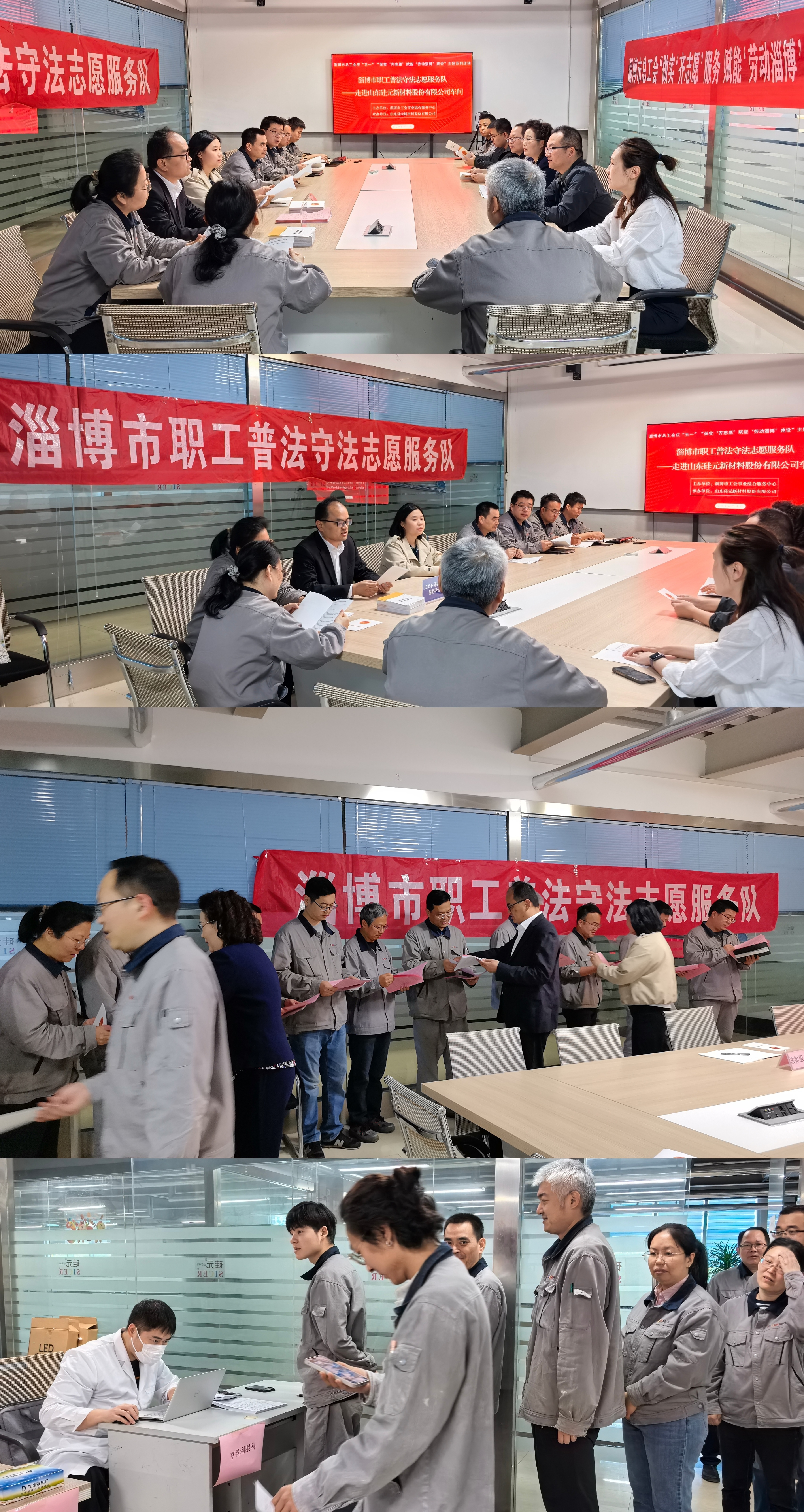 为深入推进淄博市总工会庆“五一”“做实‘齐志愿’赋能‘劳动淄博’建设”主题系列活动,2026年4月24日,市工会事业综合服务中心组织市职工普法守法志愿服务队、市职工明医护眼志愿服务队,先后走进山东硅元新材料股份有限公司、华光国瓷科技文化有限公司骨质瓷分公司,深入生产车间一线,为广大产业工人送上精准贴心的普法宣传与护眼健康志愿服务,切实把工会的关怀与服务送到职工身边,为职工办好事、做实事。