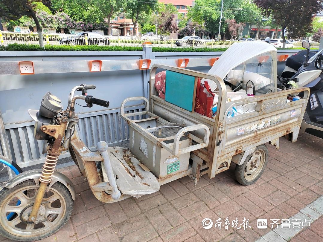 4月28日,情报员“WLD2996066”向齐鲁晚报官方客户端齐鲁壹点情报站发来一则情报,济南市中区经七路南侧人行道上停了几辆三轮车,车身落满灰尘、漆面脱落,不仅占用公共道路,而且影响市容市貌。
