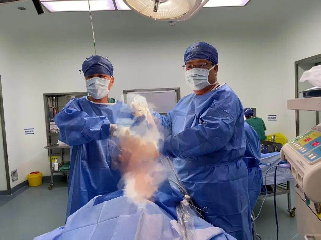 近日,心胸外科团队成功为一名右肺多发结节的患者实施了“经皮穿刺消融联合胸腔镜肺段切除”的分期杂交手术。患者先行右肺下叶结节消融治疗,随后转运至手术室接受胸腔镜下右肺上叶肺段切除术。术后患者创伤小、疼痛轻、下床早,康复良好,目前已顺利出院。