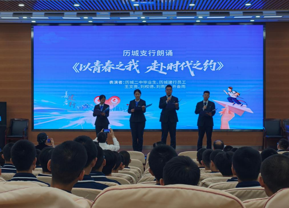 活动上,历城二中毕业生、历城建行员工王文亮、刘权德、刘雨檬、亓会雨带来朗诵《以青春之我 赴时代之约》;历城二中优秀毕业生送上寄语,励志奖学金领奖学生代表随后登台发言,表达了对社会各界关爱的感恩与铭记,并表示将珍惜机会,刻苦学习,立志成才,以行动回报社会厚望。