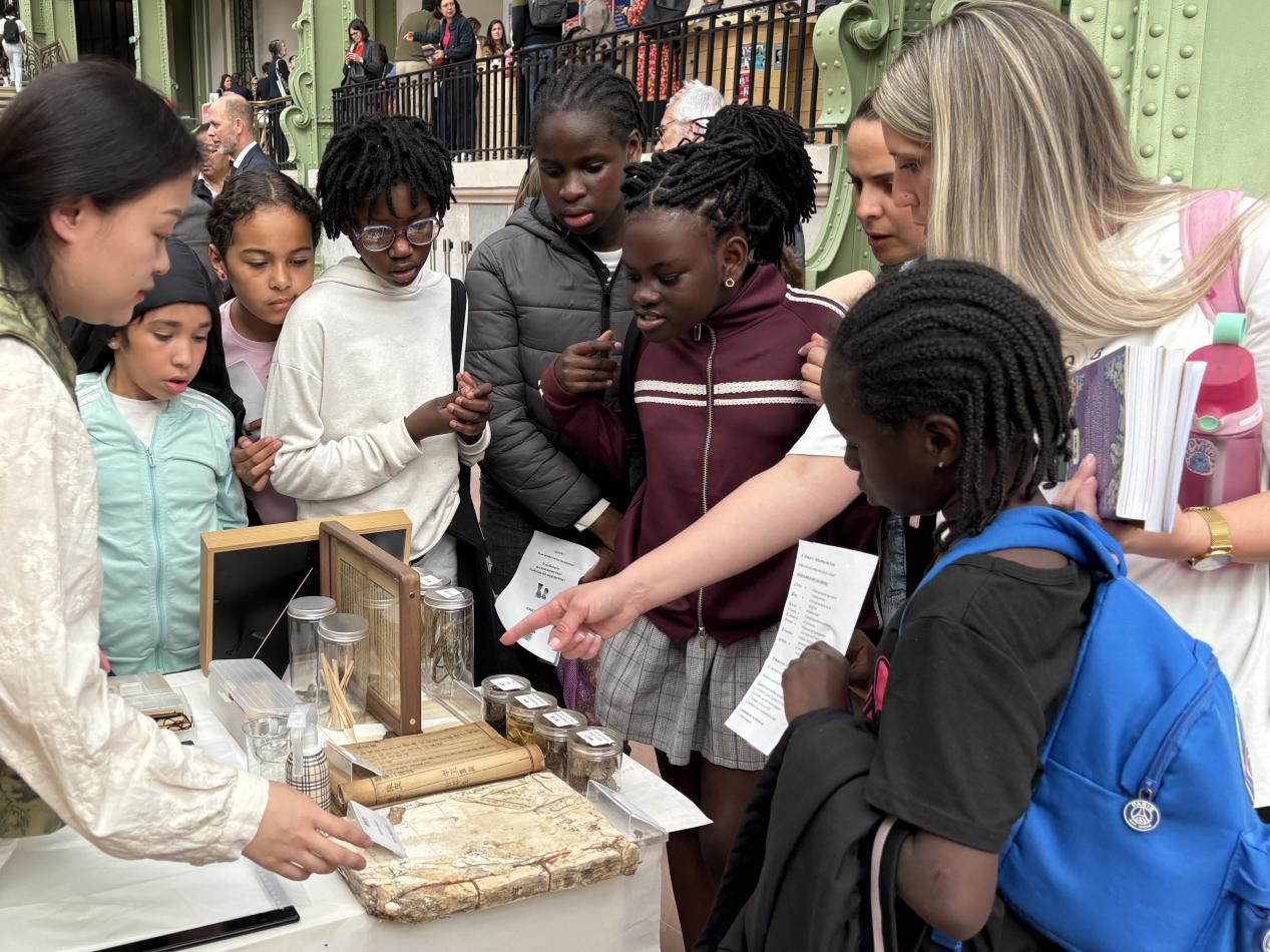 在“亲触·传续”微型互动体验区,马晓钰指导外国观众体验“亲手修补一个虫洞”“加固一段断裂”等简易修复环节,感受修复工作的细致与乐趣,不少观众将自制“修复作品”珍藏留念,成为中法文化交流的珍贵印记。