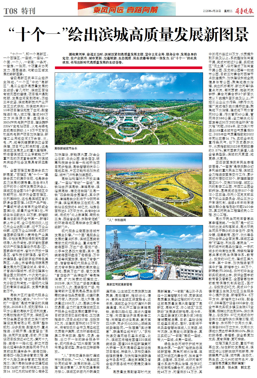 潮起黄河岸,奋进正当时。滨城区紧扣高质量发展主题,坚守立足全局、服务全市、发展自身的定位,在产业跃升、城市更新、交通赋能、生态提质、民生改善等领域一体发力,以“十个一”的扎实成效,书写出新时代高质量发展的生动答卷。