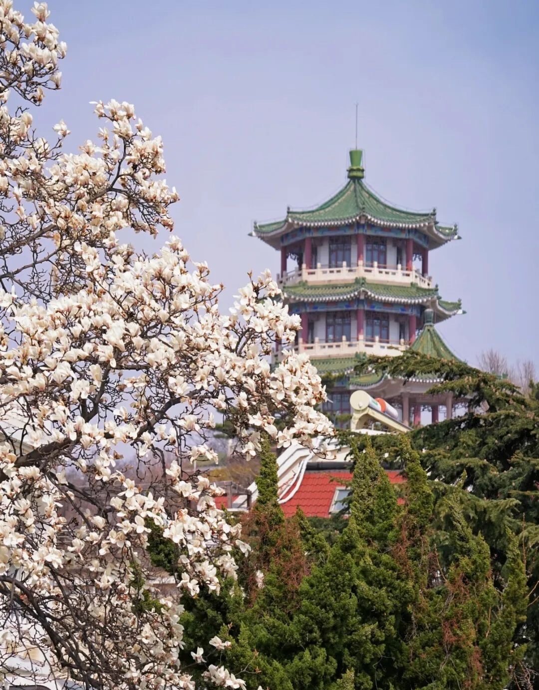 大学路14号院里,山桃花伴着咖啡香静静盛开;金口一路的那棵玉兰面朝大海,在蓝天映衬下优雅绽放,书写着春日的序章。