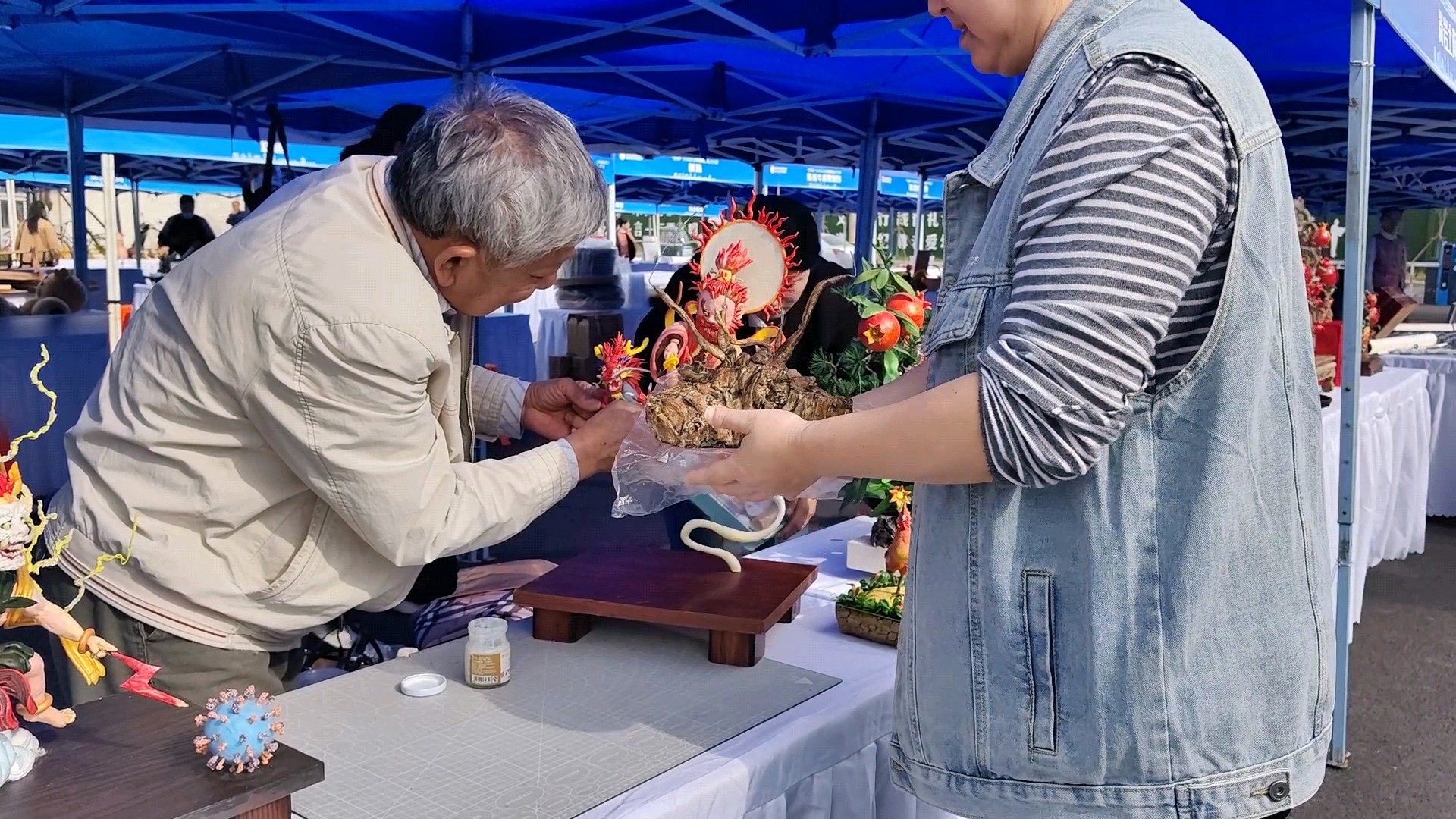 “今天我们两口子一起参加。”宋汀笑着说。对面的锔瓷展位上,她的丈夫孙启亮正展示着瓷器修复技术,他是省级非遗锔瓷技艺第五代传人。两人组成了当天的“最强夫妻档”,一动一静间,尽显手艺人的相守与匠心。