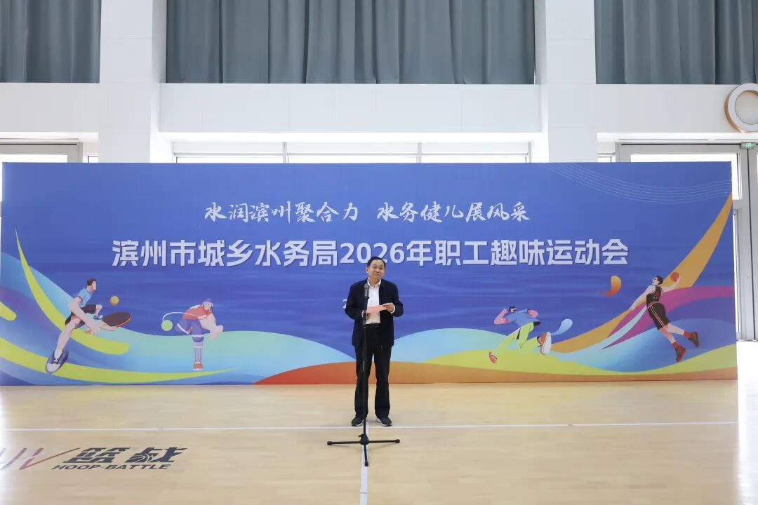 4月28日下午,滨州市城乡水务局在滨州黄河三角洲交易中心举办2026年职工趣味运动会。市城乡水务局党组书记、局长、一级调研员潘清军参加活动并致辞,党组成员、副局长李栋参加活动。