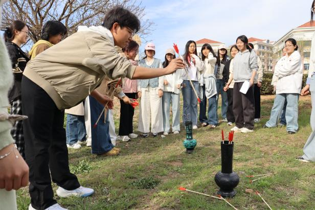 如何让茶文化传承更有趣味和活力?“茗园雅趣”游园会将中华传统文化传承与体育运动充分结合,茶园寻宝接力赛、茶杯叠叠乐让同学们充分动起来,“出出汗”的同时还能培养团队协作精神;将茶主题融入飞花令、投壶等中华传统体育活动中,茶文化也在潜移默化中深入同学们的内心。同学们在趣味游戏中解锁茶文化魅力,在团队配合中凝聚青春力量,让传统韵味与运动活力碰撞出别样火花。