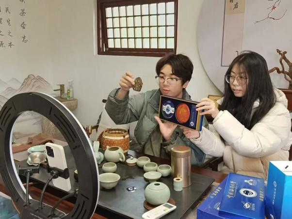 市场营销专业学生与“红旗智援”博士团深度联动,共同助力学校定点帮扶的绿春县农产品销售,在茶园里沉浸式开展起助农直播和农产品展销。成员围绕绿春农产品开展选品策划、脚本撰写与场景布置,将《茶艺》课中的冲泡规范与礼仪展示、《网络营销》课中的内容策划与用户引导,以及《电子商务服务》课中的订单转化机制等专业知识与实践活动进行有机融合。面向校内师生和校外游客,把云南绿春优质农特产品引进樱花校园,线下展销+线上直播双线发力,一周销售额已破万元,单日最高破3000元。