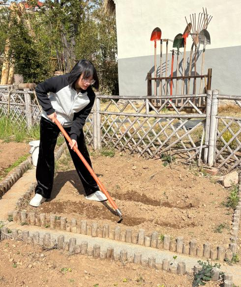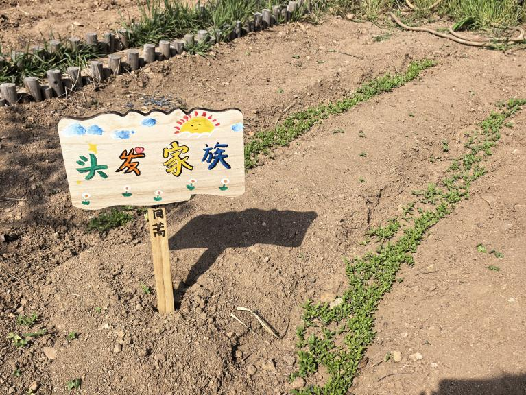 “润心苗圃”中,学生以小组为单位承包土地,“萝卜保卫战”、“头发家族”等一个个生动的苗圃名,是同学们对劳动的心血倾注和分外珍惜。挥动起锄头、拎起水桶、扶正菜苗,再把一天的劳动收获和心得写成日志,植物的生长带来的不仅是劳动的收获,还有对生命的感悟和心灵的抚慰。