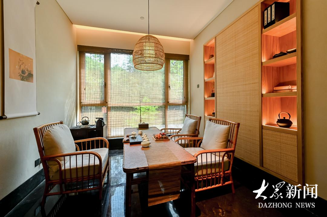 酒店以“泉”为引,将艺术与自然有机融合。从入口的“引泉”、前厅的“寻泉”,到客房的“听泉”“观泉”,每一处空间都旨在营造舒适惬意、曲折幽静的东方气韵。