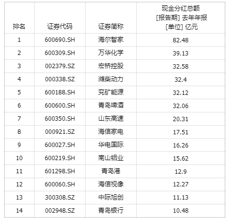 从已披露的数据来看,山东上市公司的分红呈现明显的头部集中特征。