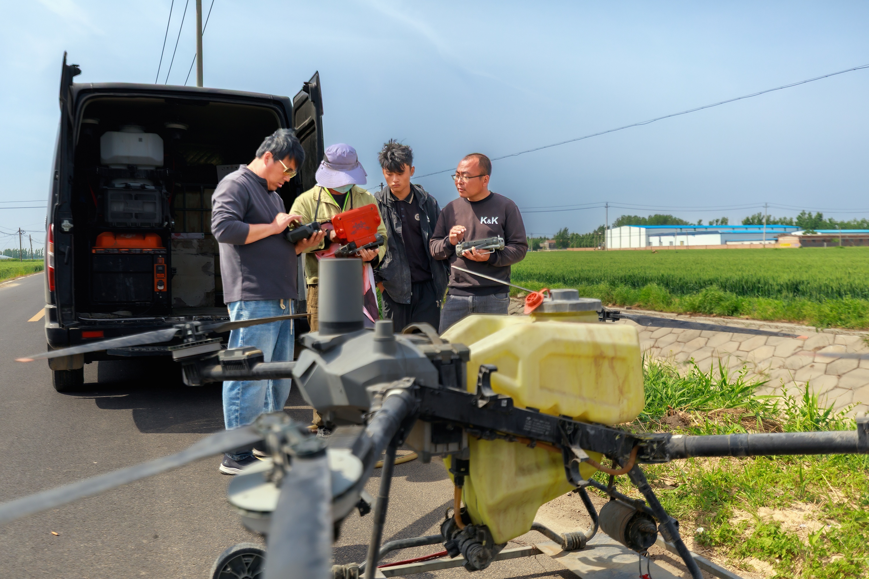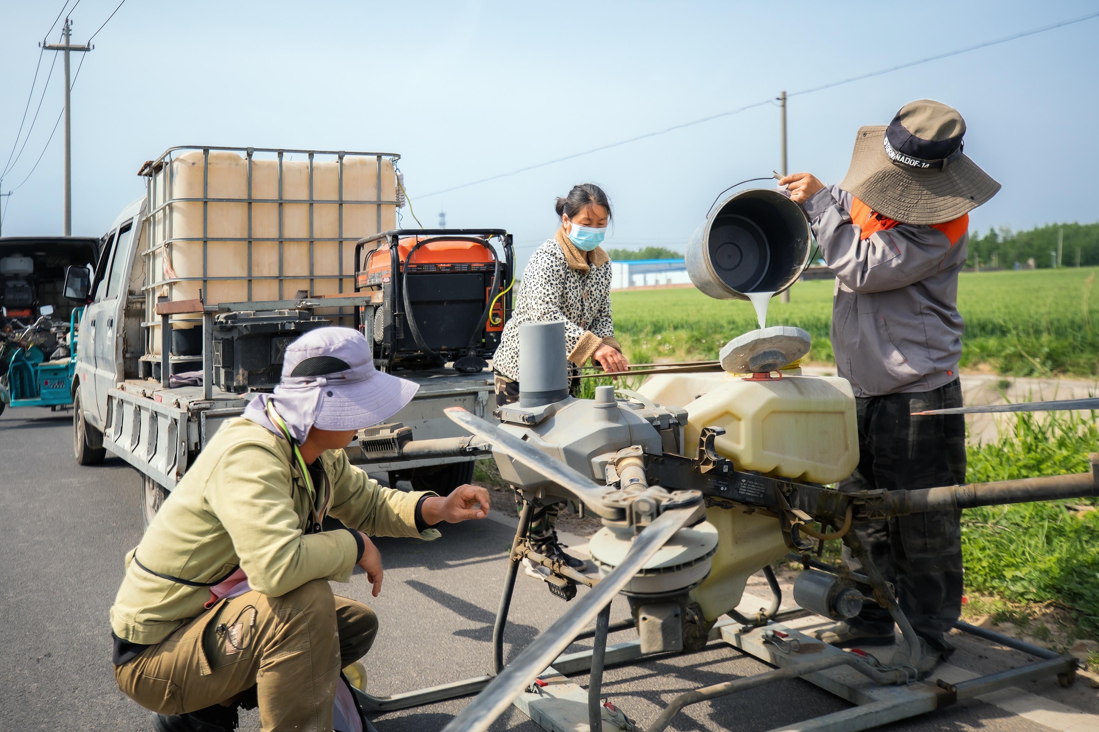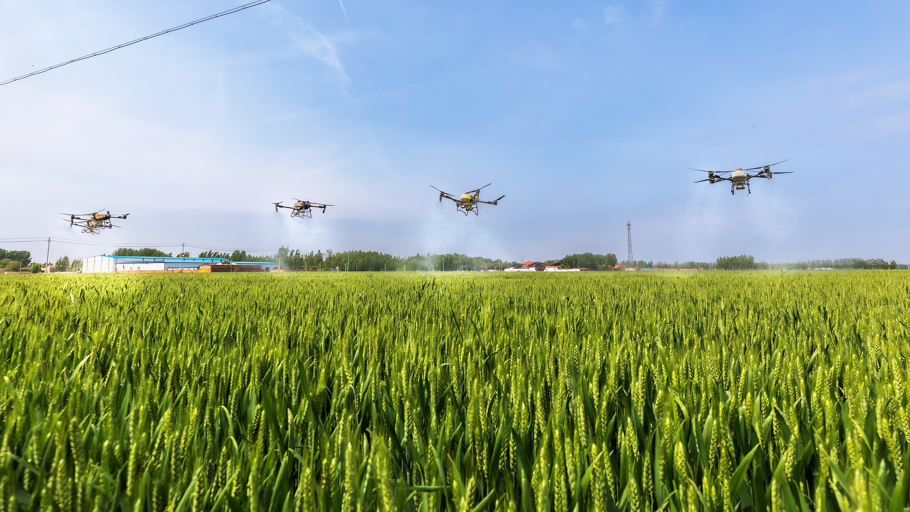 4月28日,临清市魏湾镇王杜村,万亩麦田“一喷三防”飞防开始。据介绍,通过一次性喷施杀菌剂、杀虫剂、叶面肥等混配液,从而达到麦田防病、防虫、放早衰的目的。确保今年夏粮增产丰收。(大众新闻记者薛良诚通讯员隋青)