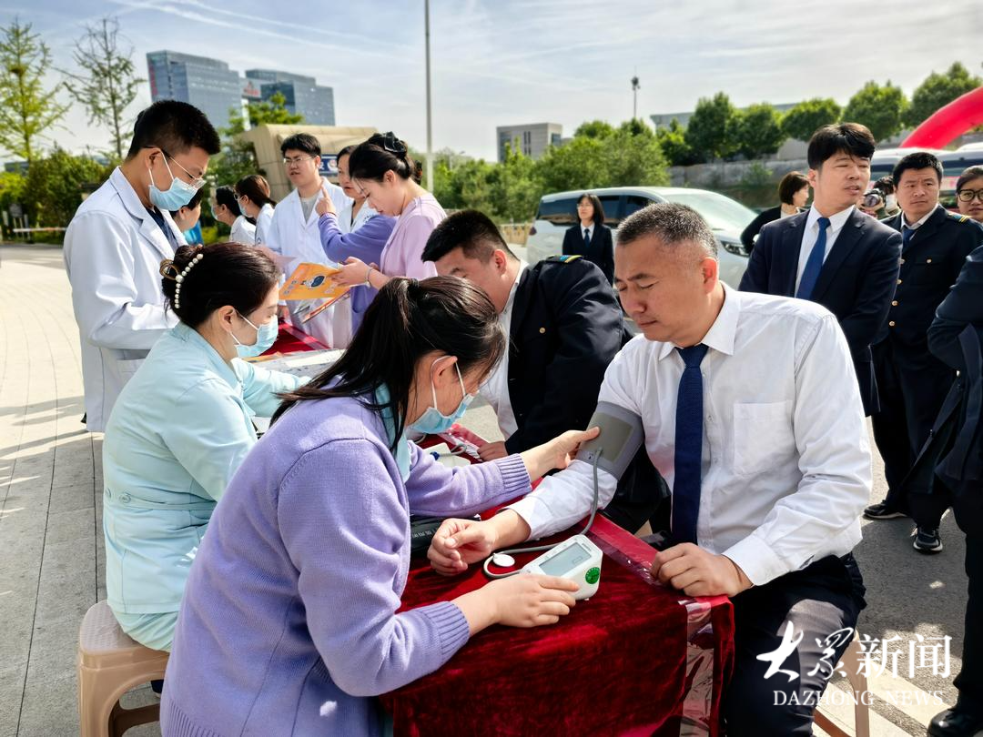在开通仪式的现场,公交出行管家详细讲解M6路线路情况,宣传小巷公交、定制公交、优惠换乘等惠民政策,并发放公交便民地图、宣传手册;山东省公共卫生临床中心同步开展免费义诊健康服务,公交与医院双向联动互动,便民惠民,一站式为市民提供出行指引与健康便民服务。