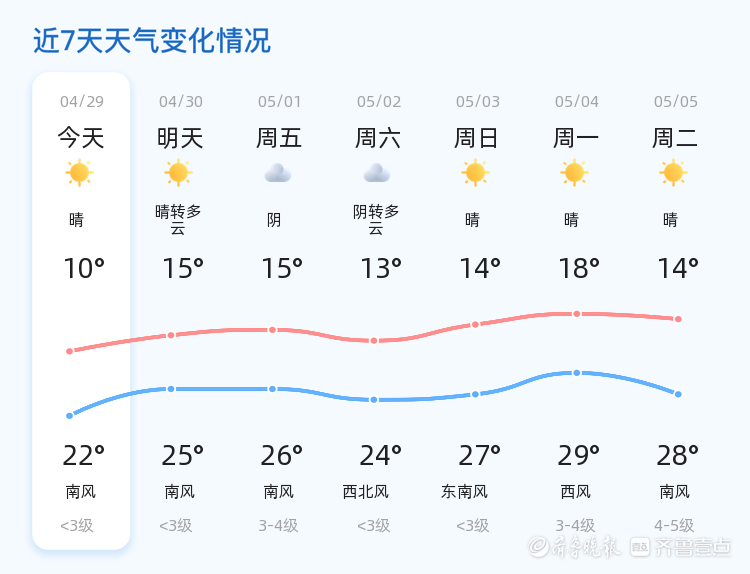 预计明日德州天气为晴转多云,气温较今日有所上升,最低气温15℃,最高气温25℃,南风风力依旧较小,市民可享受温暖的春日时光。