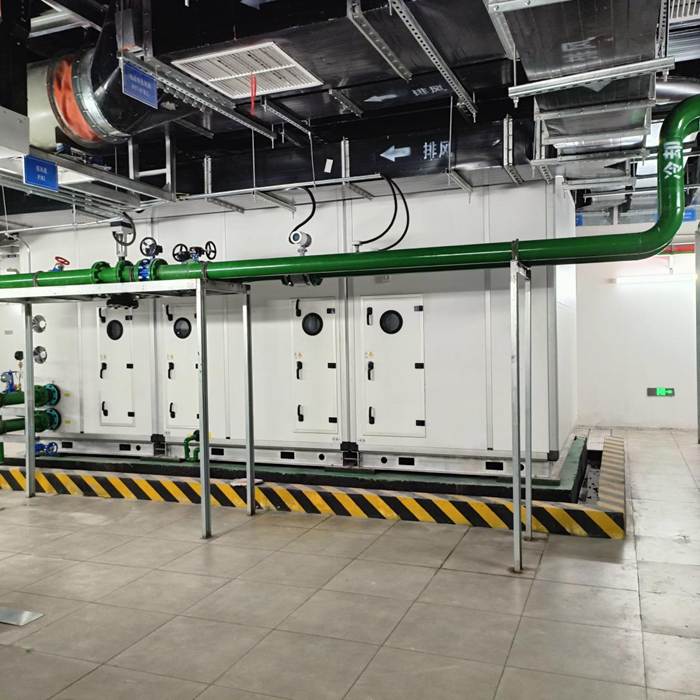 针对地铁车站大系统场景,传统空调普遍采用“冷源+冷冻水+末端表冷器”的间接换热架构,存在换热链路长、能效损耗大、冷冻水系统故障频发、实际运行效率低下等行业顽疾。朗进科技创新优化冷源到空气侧的换热流程,突破性将直接蒸发制冷与变频涡旋并联技术应用于地铁大系统场景,成功攻克大型表冷器均匀布液、风机与冷凝机组智能联控、变频系统稳定回油等一系列行业共性技术难题,从底层架构层面消除了传统方案的能效损耗短板。