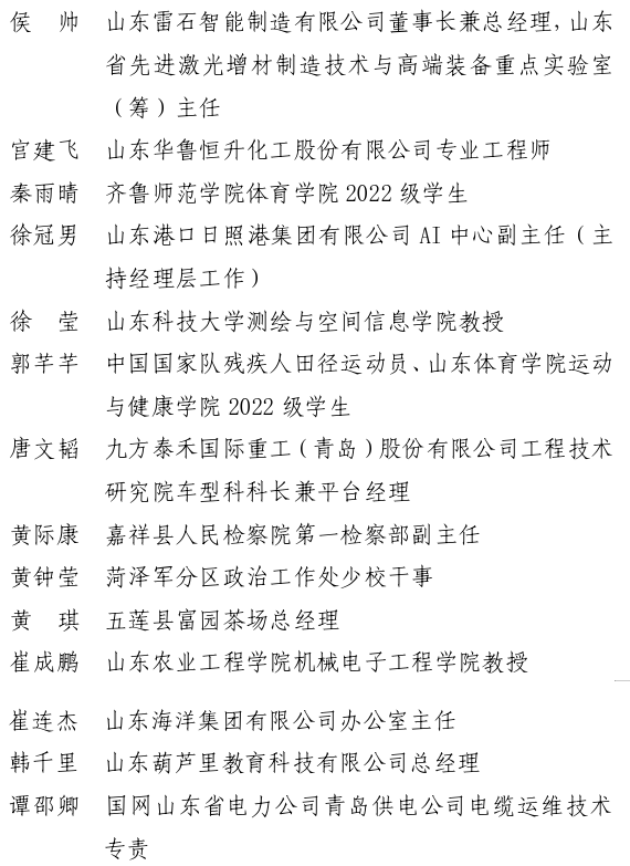 本届山东青年五四奖章获得者在各行业立足本职、担当作为、奋勇争先,为奋力谱写中国式现代化山东篇章贡献青春力量,充分展现了新时代山东青年昂扬向上的精神品格和矢志奉献的价值追求。(来源:青春山东)