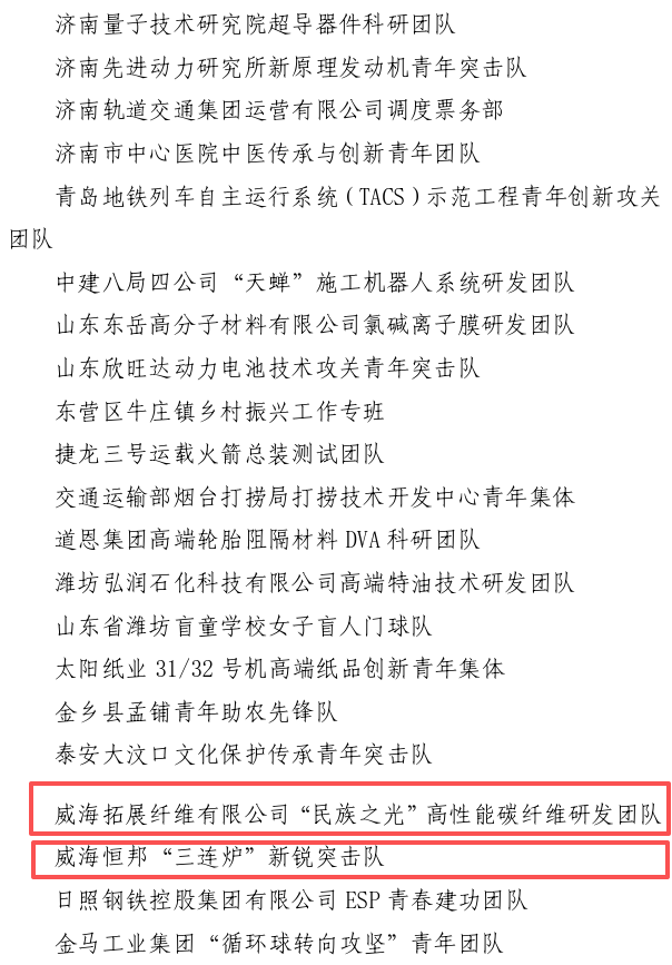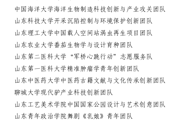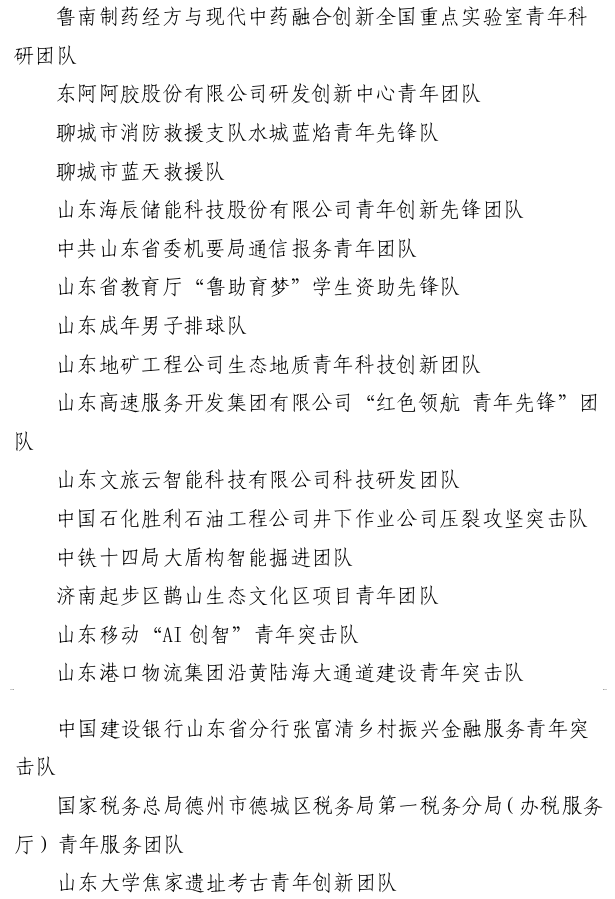 第27届山东青年五四奖章集体名单