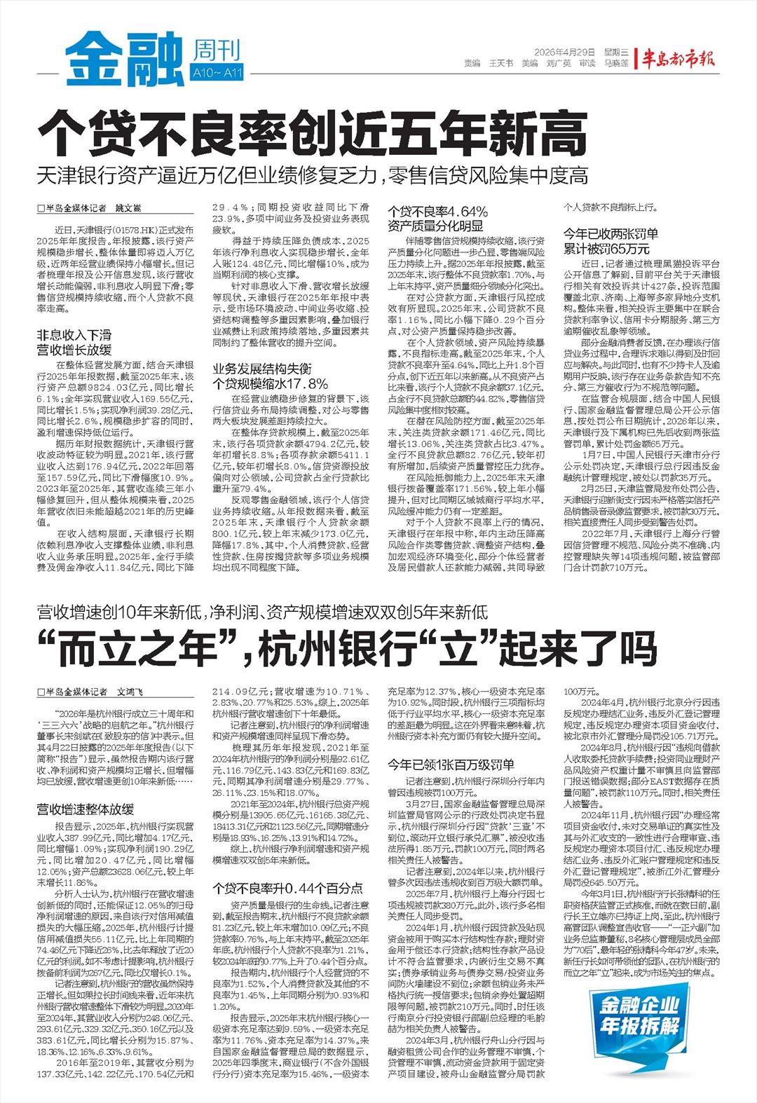 个贷不良率创近五年新高!天津银行资产逼近万亿但业绩修复乏力,零售信贷风险集中度高